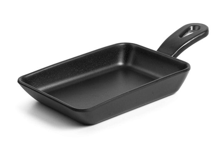 Mini travessa rectangular de resina modelo Magma com aspecto natural similar ao ferro fundido. Ideal para servir e apresentar os pratos mais esquisitos.