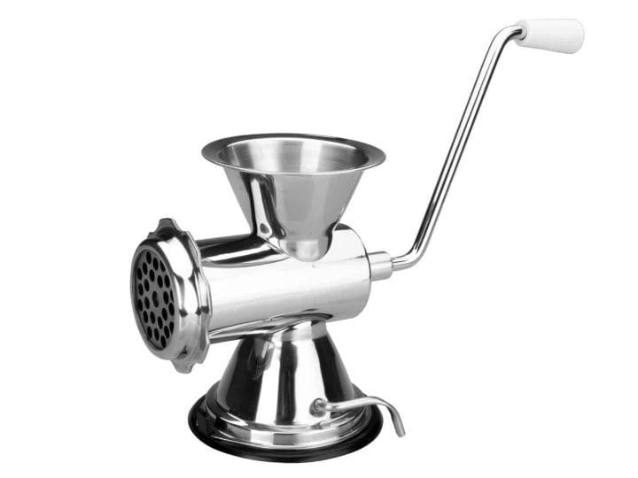 Moedor de carne manual semi-profissional de 17x12x19 cm fabricada em aço inoxidável de grande qualidade e resistência à corrosão.