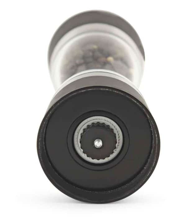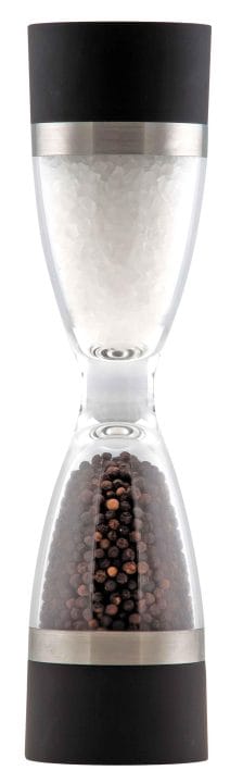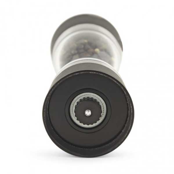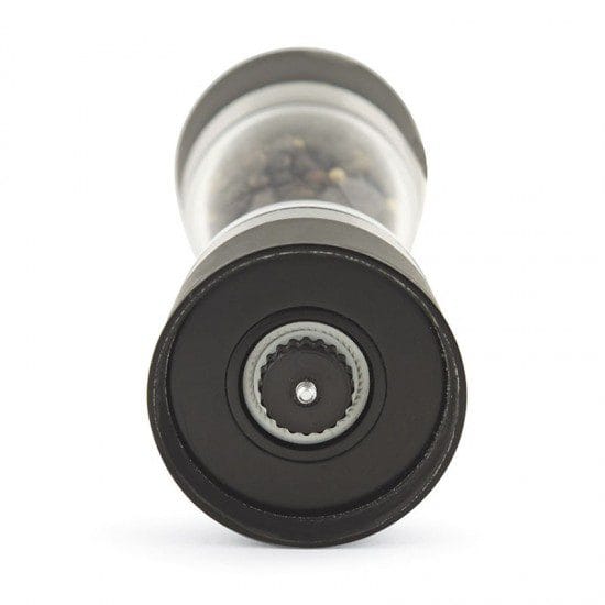 Moinho 2 em 1 para sal e pimenta do 6×18 cm fabricado em acrílico com mecanismo cerâmico de alta resistência e qualidade. Antiderrapantes na parte superior e inferior.