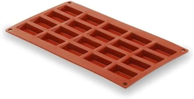 Molde caixas pequenas para bolos com 20 cavidades de 4,9×2,6×1,com 1 cm fabricado em silicone da série Pastryflex.