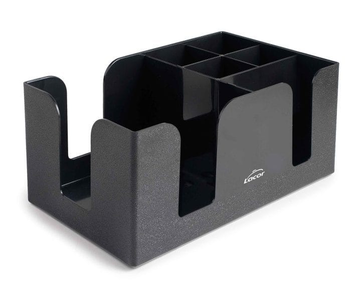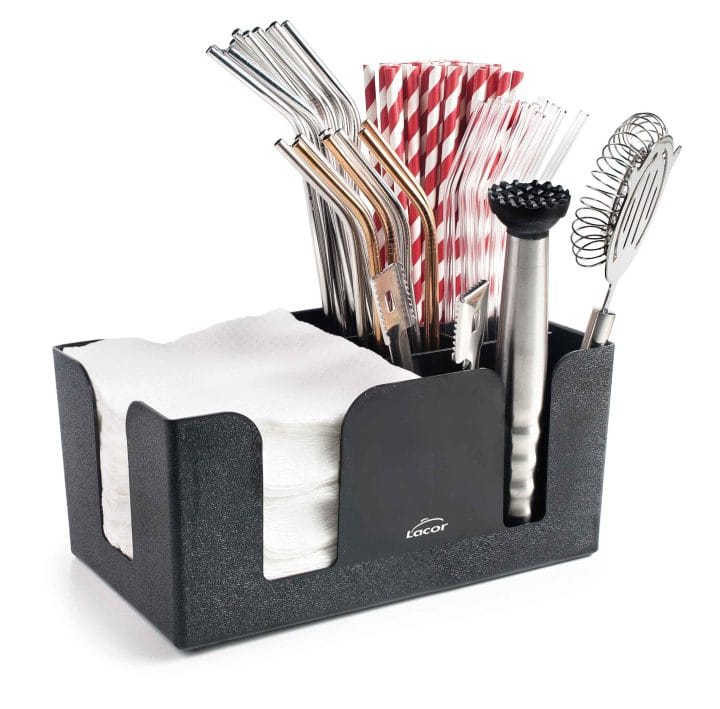 Acessório ideal para organizar utensílios e acessórios de preparação de cocktails e bar, como guardanapos, palhinhas, adornos, etc.