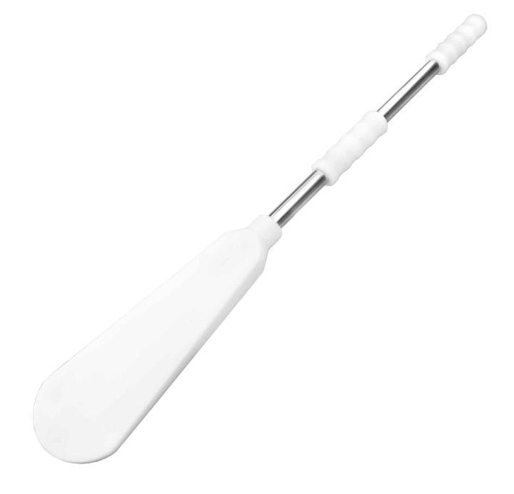 Pá profissional para cozinha fabricada em polietileno branco, com alça de aço inoxidável de grande qualidade que oferece excelente resistência à corrosão. Comprimento: 74 cm