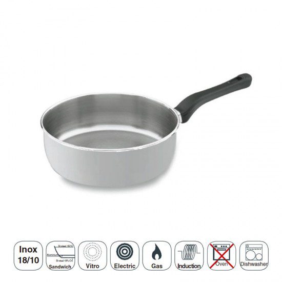 Panela modelo de Estudo fabricado em aço inoxidável 18/10 com fundo termodifusor sanduíche adequado para placas de indução, elétricos, placas e fogões a gás.