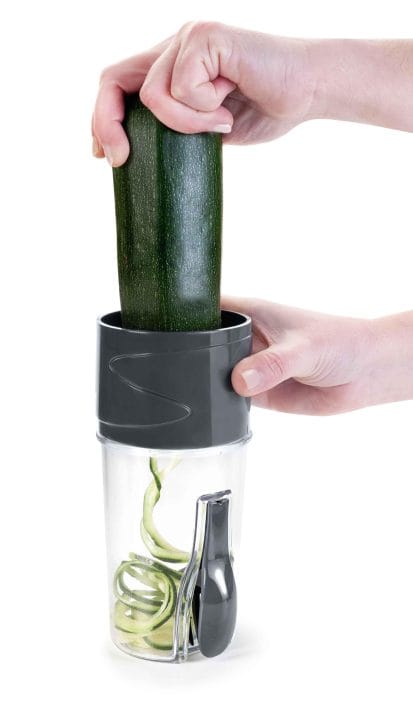 Curta frutas e legumes em forma de macarrão, sendo ideal para o corte de abobrinha, batata, beterraba, cenoura, nabo, etc.