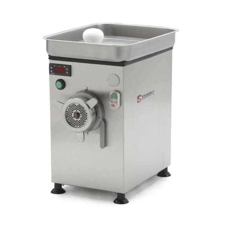 Picadora de carne refrigerada em aço inoxidável, para produção média.