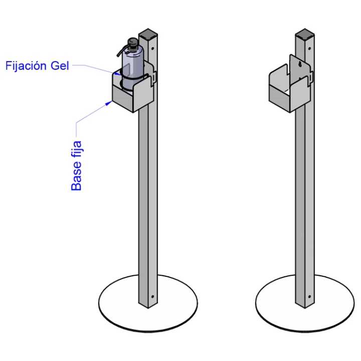 CSG: É uma base em aço inoxidável para dispensador de gel, regulável em altura, o que lhe permite adaptar-se a diferentes tipos de dispensadores. Todos os componentes são robustos e oferecem uma qualidade garantida.