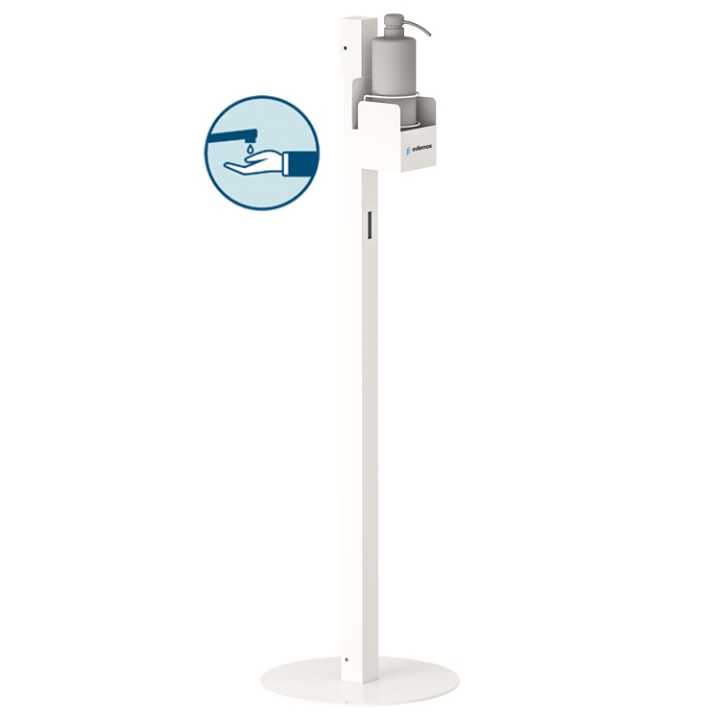 DGP: É um dispensador acionado por pedal, de funcionamento simples, muito prático e que se adapta a uma grande variedade de tipos de frascos, já que é regulável em altura. Inclui uma bandeja antigotejamento e um frasco dispensador de gel de 1 litro.