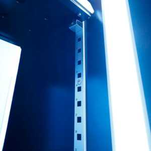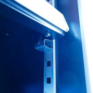 4 filas de prateleiras sólidas reforçadas, de 500 mm de largura, feitas de chapa pintada de preto (prateleiras extra disponíveis)
