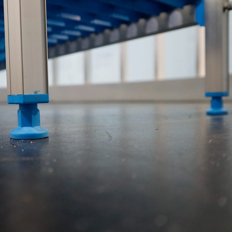 Pés reguláveis em altura que permitem superar qualquer desnível no chão.