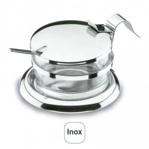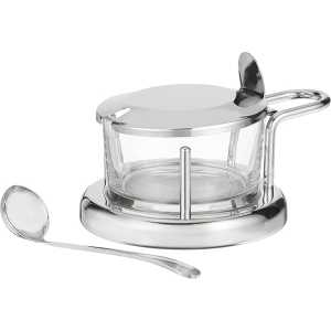 Queijaria parmesão com uma colher de 200 ml de capacidade e 9×5 cm fabricada em vidro e aço inoxidável de grande qualidade.