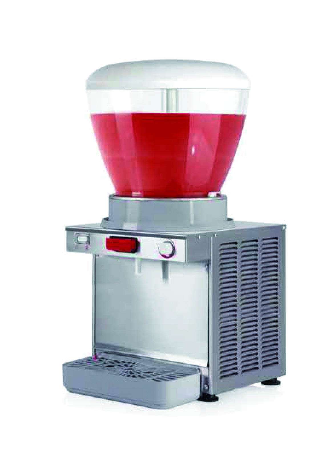 Para refrigeração e distribuição de sumos naturais. Feito com características técnicas especiais que garantem uma mistura perfeita de bebidas. Todas as peças em contato com a bebida são facilmente e rapidamente desmontadas para uma limpeza perfeita. Recipiente de policarbonato não tóxico.
