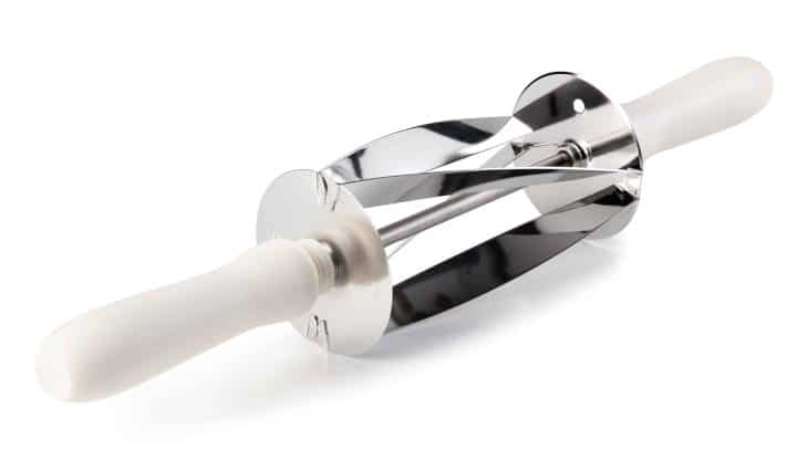 Rolo de pastelaria para cortar Croissants fabricado em aço inoxidável de alta qualidade com alças de nylon. Medida: 41,5 cm