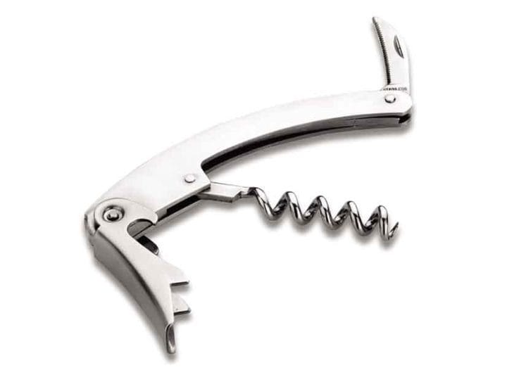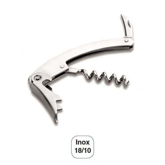 Prático saca-rolhas para garçom fabricado em aço inoxidável 18/10. Inclui canivete para descapsular as garrafas de vinho.