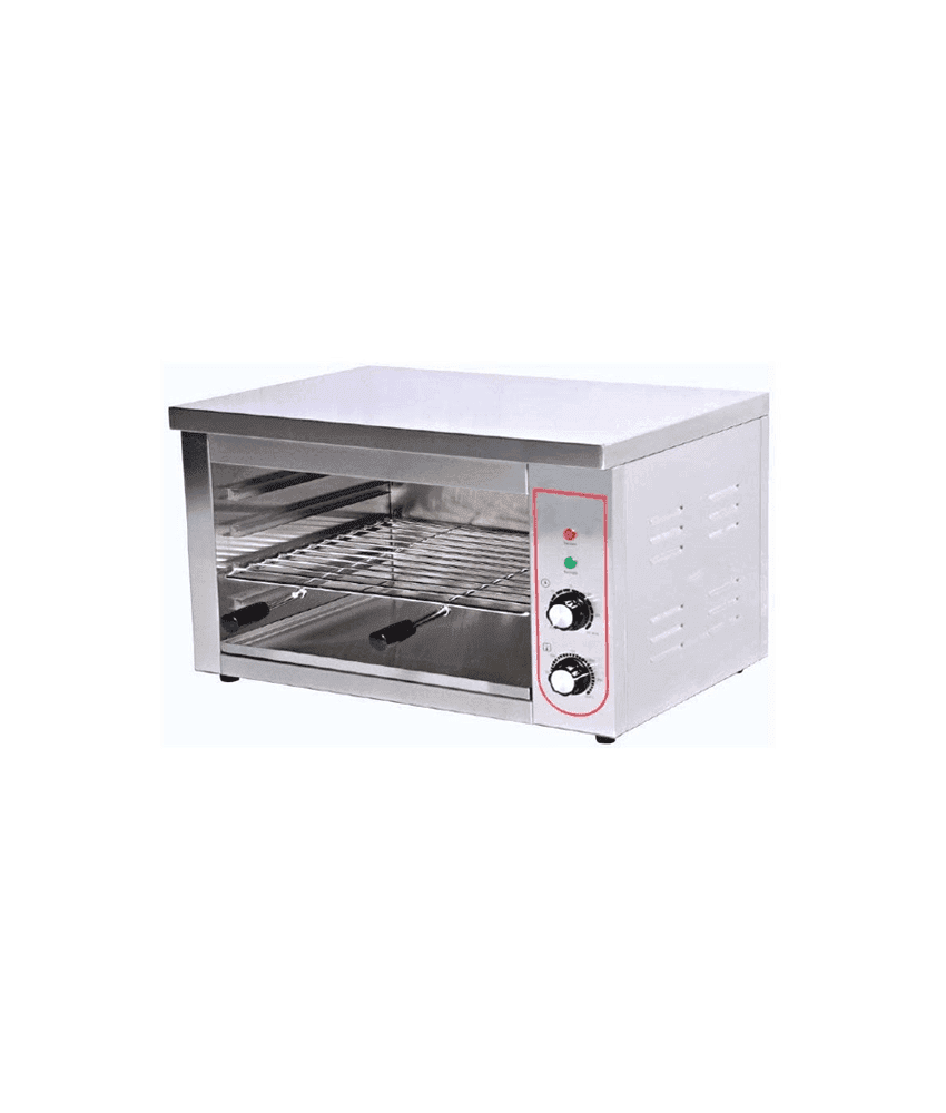 Salamandra elétrica de topo fixo, com estrutura em aço inoxidável. Equipamento multifunções, podendo gratinar, aquecer ou confeccionar os mais diversos pratos.