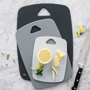 Pack de 3 tabelas de corte em polipropileno de alta densidade e resistência máxima com superfície de corte de dupla face.
