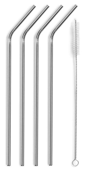 Set de 4 canudos de aço inoxidável 18/10 de grande qualidade e excelente resistência à corrosão, mas uma escova de limpeza.