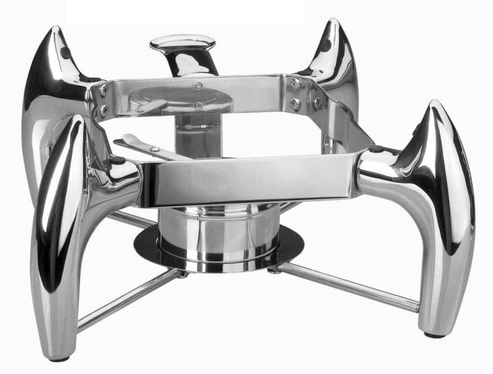 Suporte Chafing Dish GN 1/2 gama Luxe fabricado em aço inoxidável 18/10 de alta qualidade e excelente resistência à corrosão. Ideal para hotelaria e buffets.
