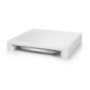 Prática tábua de corte com uma recipiente Gastronorm GN 2/3 de aço inoxidável e oculta completamente removível para recolher os alimentos cortados.Fabricada em polietileno de alta densidade de cor branca.