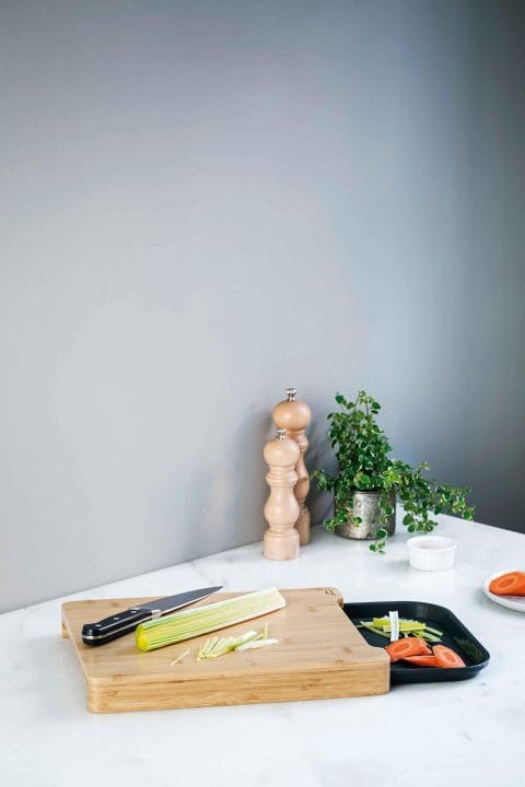 Tábua de cortar tratada com um revestimento protetor e antibacteriano