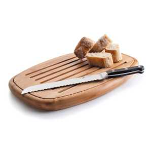 Tabela de corte de pão oval de 40 x 27 x 3 cm fabricado em bambu natural de alta qualidade.