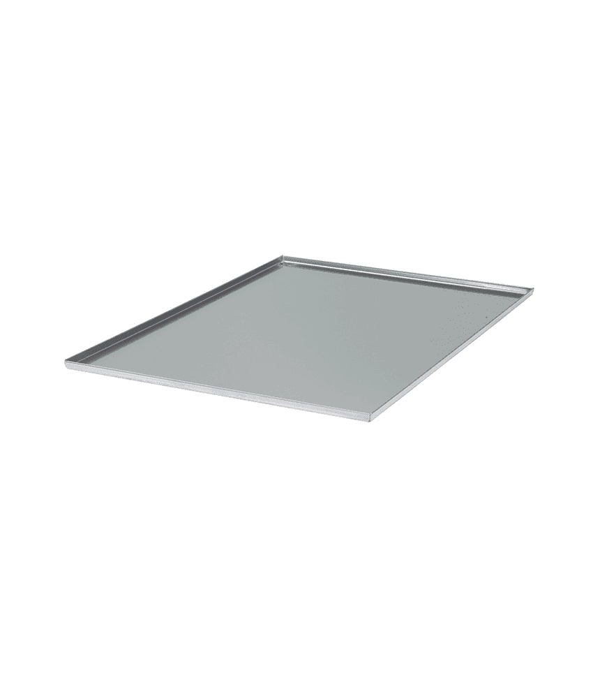 Tabuleiro liso em aço inox com 430x340mm.
