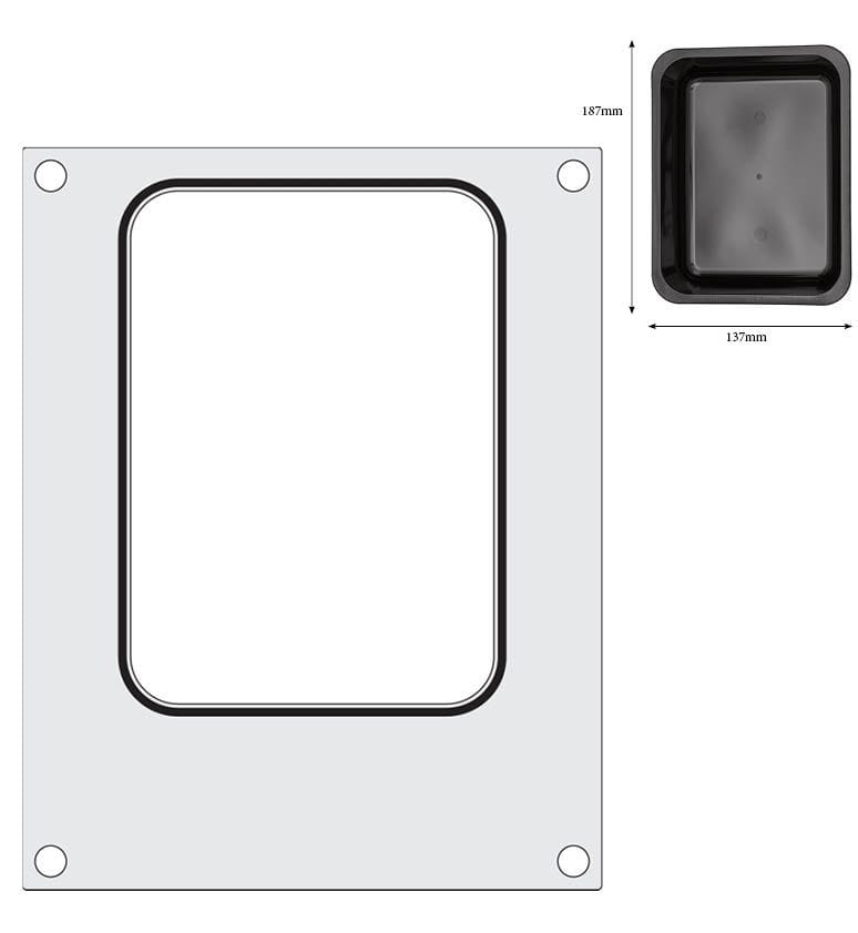 para um tabuleiro com um único compartimento com as medidas 187×137 mm
