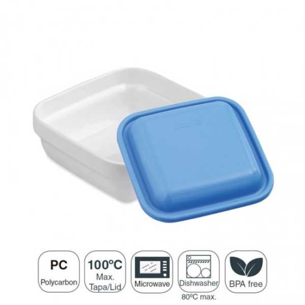 Bol quadrado de 12x12x4,5 cm, com tampa fabricado em policarbonato. Compatível com bandejas isolamento B1 destinadas à distribuição de refeições em hospitais, residências, etc.