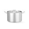 O fundo espesso em forma de sanduíche (aço inoxidável/alumínio/aço inoxidável) combina as propriedades de propagação de calor do alumínio, com a durabilidade e as propriedades magnéticas do aço inoxidável, tornando as panelas adequadas para utilização em fogões de indução.