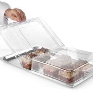 A capa de apresentação GN 1/1 feita de policarbonato transparente é um acessório para bandejas de banquetes GN.