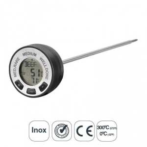 Termômetro sonda com display digital e alarme para medir a temperatura de líquidos ou alimentos com um intervalo a partir de 0ºC a 300 ° c. Medidas: 5×23 cm
