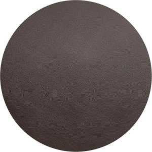 Individual redondo de 40 cm feito de couro granulado marrom 100% reciclado com uma espessura de 2,1 mm, Higiênico e fácil de limpar com solução hidroalcoólica.