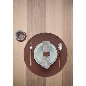 Individual redondo de 40 cm feito de couro liso marrom 100% reciclado com uma espessura de 1,5 mm, Higiênico e fácil de limpar com solução hidroalcoólica.