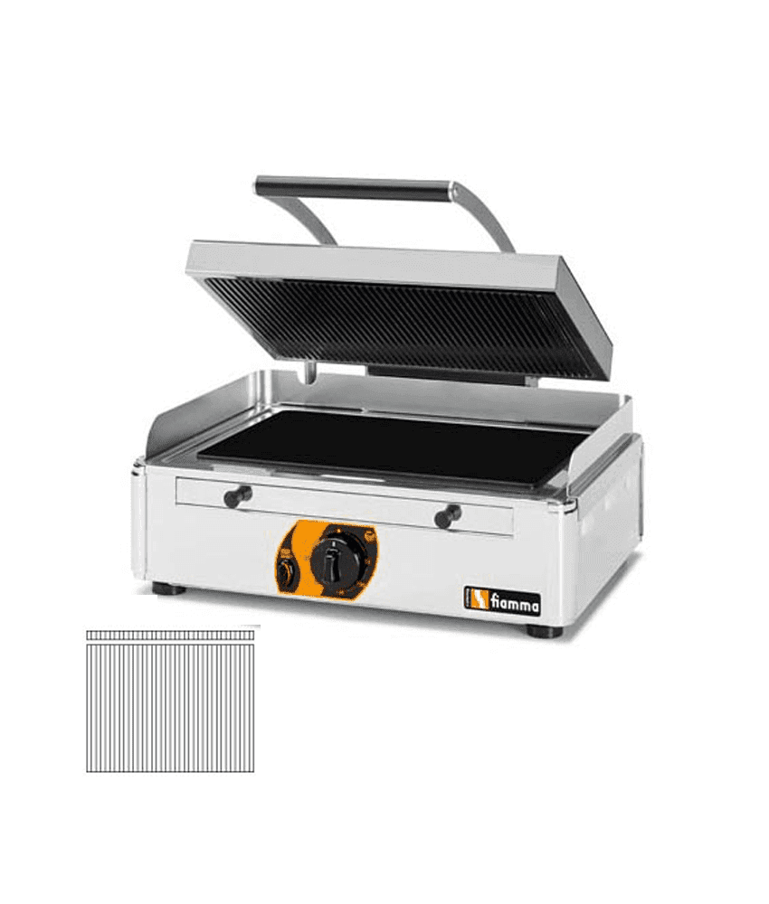 Tostadeira vitrocerâmica com placa inferior e superior nervuradas ou inferior lisa e superior nervurada.