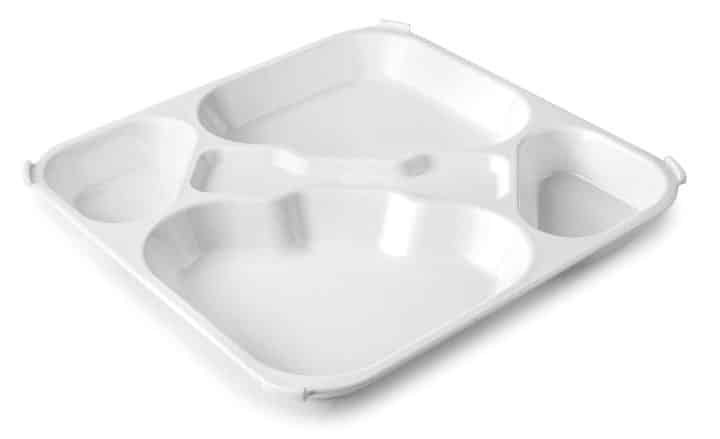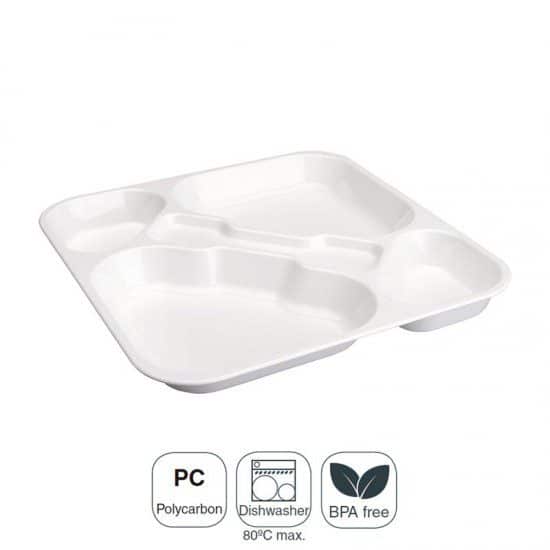 Travessa de 33×33 cm para self-service, fabricada em policarbonato. Ideal para uso em hospitais, residências, escolas, cantinas, buffets, etc.