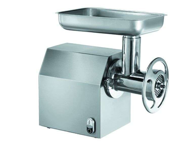 Corpo e tremonha de aço inoxidável – unidade de moagem de aço inoxidável totalmente removível – Entrada de carne de diam.52mm – motor de engrenagem oleada – sistema de entrada com placa de aço inoxidável (furos de diam.6mm) e faca de aço inoxidável auto-afiada fornecida. Com Inversor.