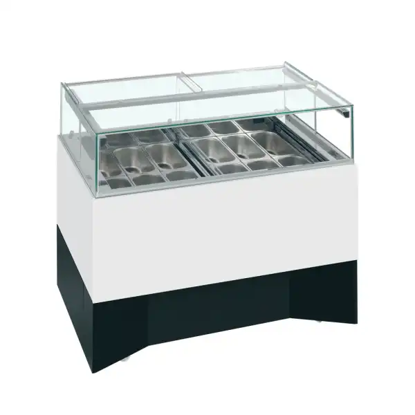 O DELTA RV oferece um design que economiza espaço e pode armazenar até 12 bandejas Napoli ocupando um mínimo de espaço. Possui um sistema de refrigeração de zona dupla que permite duas zonas de temperatura independentes, cada uma com seu próprio controlador e indicador de temperatura, permitindo-lhe servir sorvetes ou gelados à sua temperatura ideal.