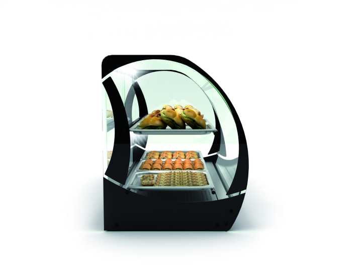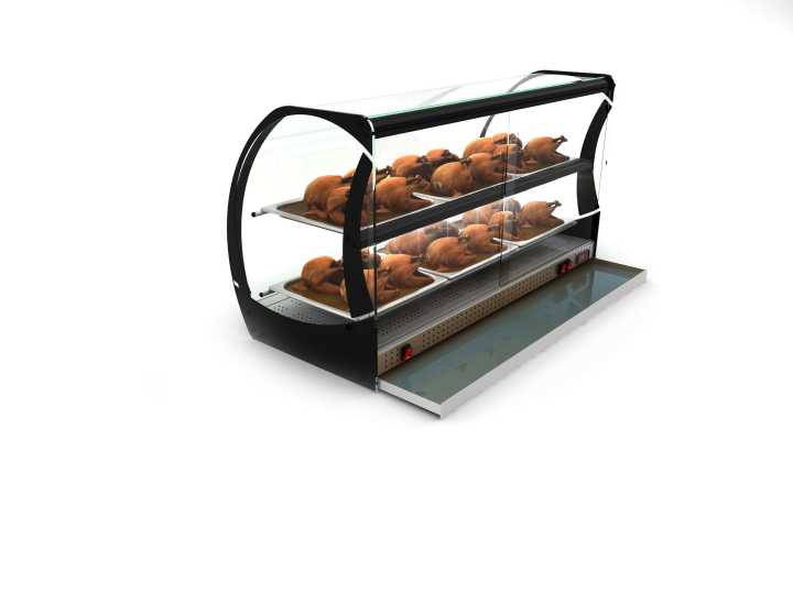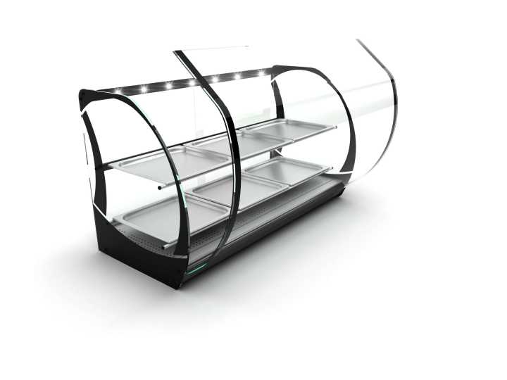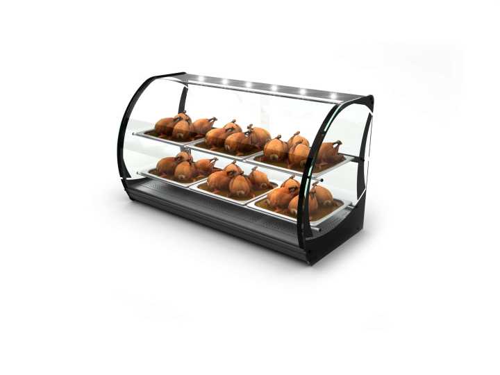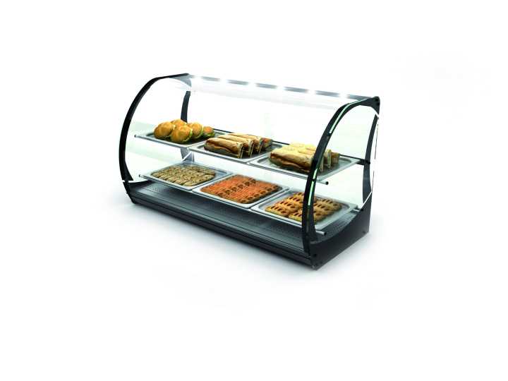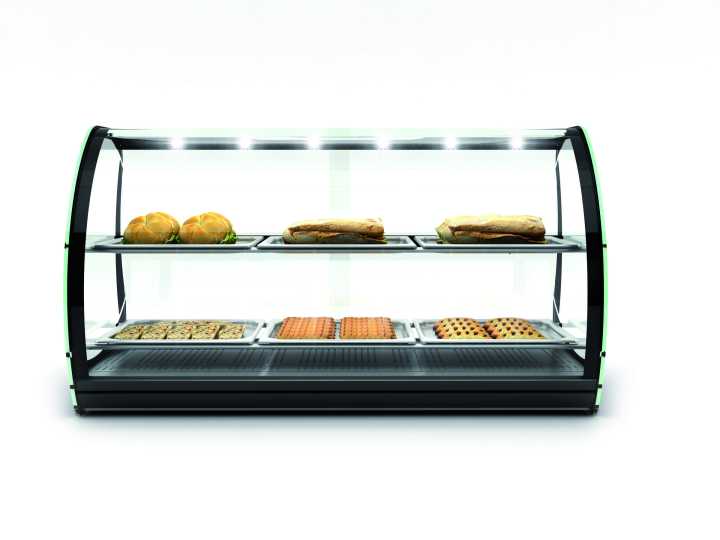 Vitrine aquecida com LEDs de alta potência em ambas as prateleiras