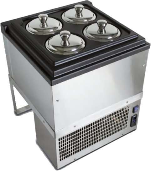 Vitrine expositora para gelataria com a unidade frigorifica inferior; Com termostato electrónico; Refrigeração estática; Temperatura regulavel positiva e negativa;