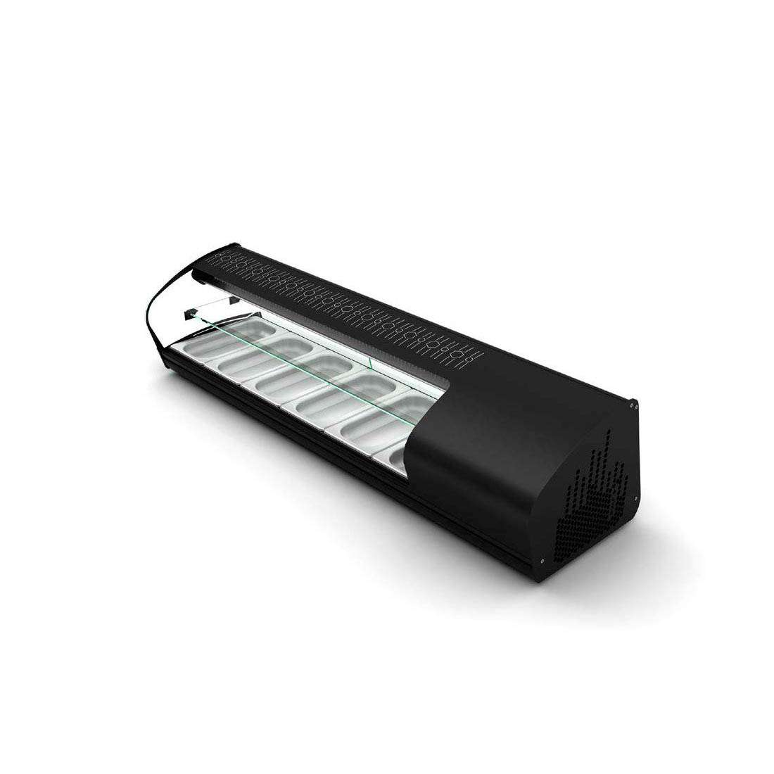 A vitrine refrigerada SHARK de 2 planos é fornecida com uma segunda prateleira neutra para aproveitar ao máximo o espaço. Vidro dobrável para facilitar a limpeza. Prateleira intermediária de vidro. Portas deslizantes para fácil remoção e limpeza. Iluminação com Leds, consumo mínimo. Opcional: possibilidade de iluminação na prateleira (iluminação dupla). Superfície superior adequada para apoiar pratos. Dobradiça frontal invisível. Termostato eletrônico ajustável com leitura digital constante. Cuba embutida em aço AISI304. Fabricada com componentes «Danfoss» de alta qualidade. Sensores ocultos para limpeza fácil. Vitrine com máxima visibilidade. Bandeja de coleta automática de água. Projetada para evitar a expulsão de ar quente para o usuário ou cliente. Fabricada em aço inoxidável e vidro temperado. Área do motor protegida. Inclui bandejas gastronorm GN 1/3×40 em AISI INOX. Modelo de balcão, compato, sem necessidade de pré instalação.