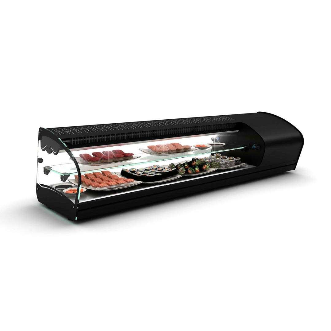 Vidro frontal rebatível para limpeza fácil. Portas deslizantes para fácil remoção e limpeza. Iluminação de Leds de alta potência de última geração, consumo mínimo. Superfície superior adequada para apoiar pratos. Dobradiça frontal invisível. Termostato eletrônico ajustável com leitura digital constante. Cuba plana AISI304 equipada com ralo e sem ângulos para facilitar a limpeza. Placa fria e evaporador superior estático duplo. Componentes «Danfoss» da mais alta qualidade. Sensores ocultos para limpeza fácil. Vidro removível sem ferramentas. Bandeja de recolha automática de água. Concebida para evitar a expulsão de ar quente para o usuário ou cliente. Fabricada em aço inoxidável e vidro temperado.