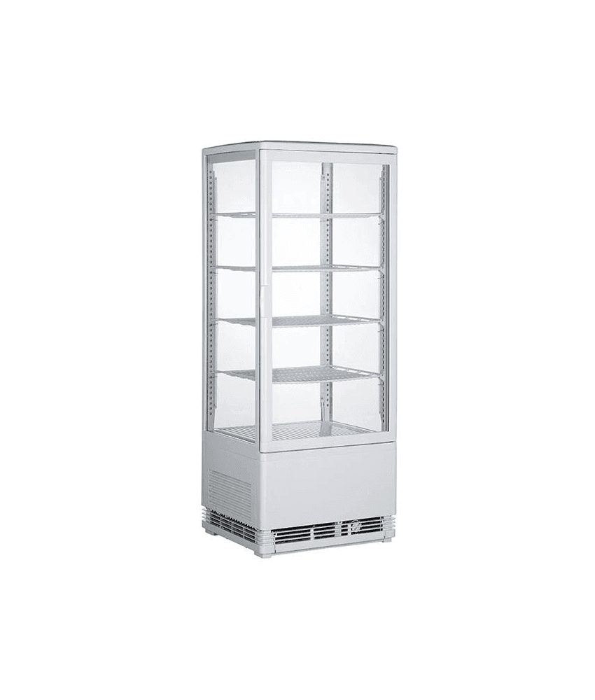 Vitrine refrigerada expositora com 4 faces em vidro, a solução ideal para exposição de saladas, sobremesas e alimentos frescos.