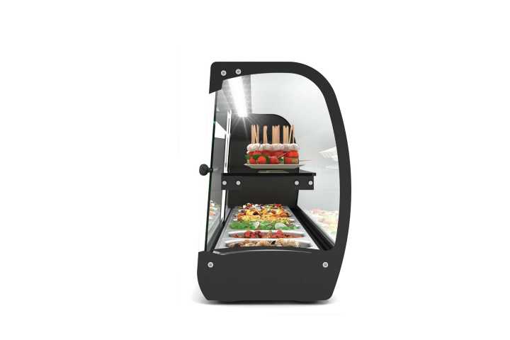 Vitrine refrigerada com a profundidade de apenas 24 cm, a fim de ampliar o cobiçado espaço dos balcões de bar. A vitrine é a vitrine refrigerada mais estreita já feita