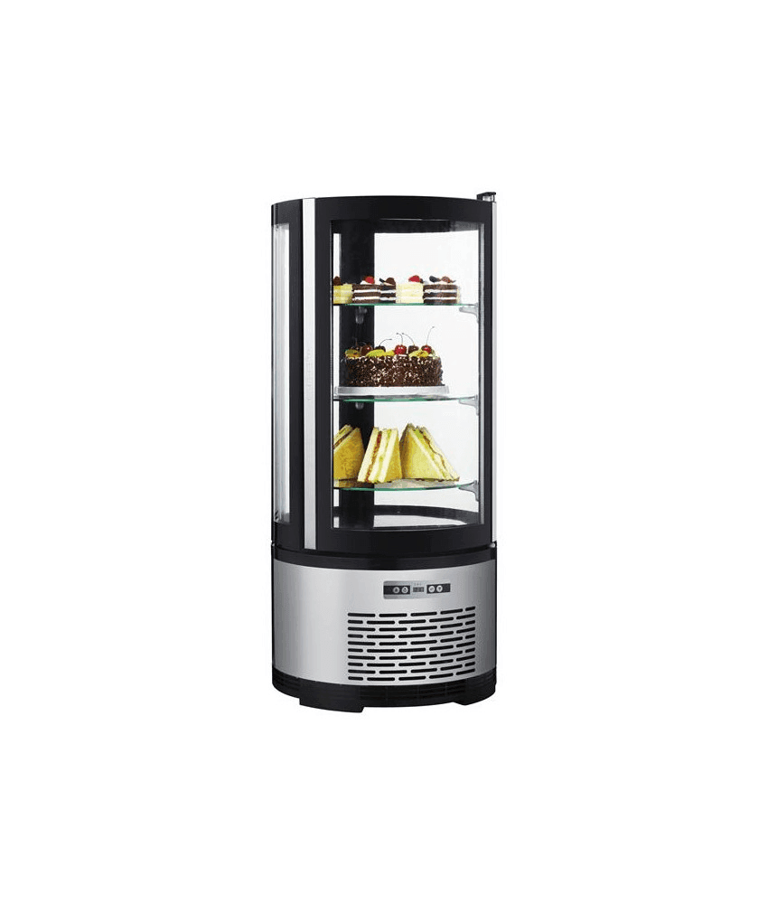 Vitrine refrigerada expositora com faces redondas em vidro, a solução ideal para pastelaria.
